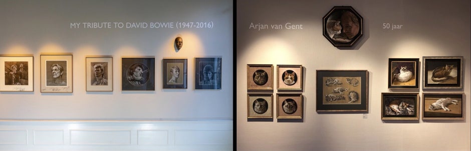 Exclusive to this exhibition is the presentation of a series of portraits of the artist's musical heroes. There is an extremely special tribute to David Bowie, who died exactly five years ago on January 10th. The homage includes a series of portraits of Bowie, supplemented with portraits of his former band members.